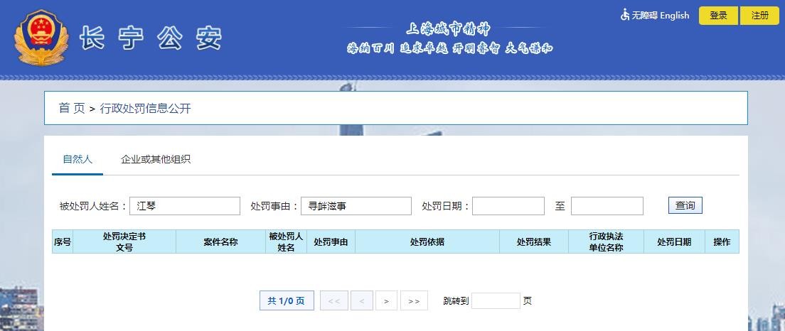 上海市公安局长宁分局网站系统查询显示没有江琴信息?(截图)