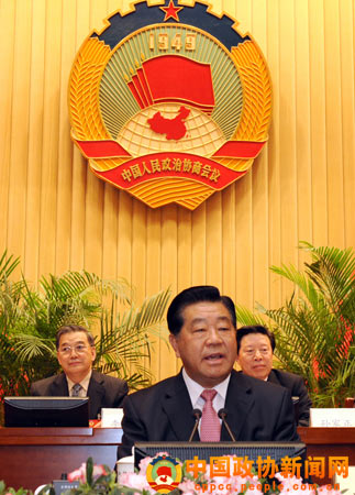 政协第十一届全国委员会常务委员会第八次会议圆满完成各项议程后,于28日下午在北京闭幕。中共中央政治局常委、全国政协主席贾庆林出席并讲话。 张海霞 摄